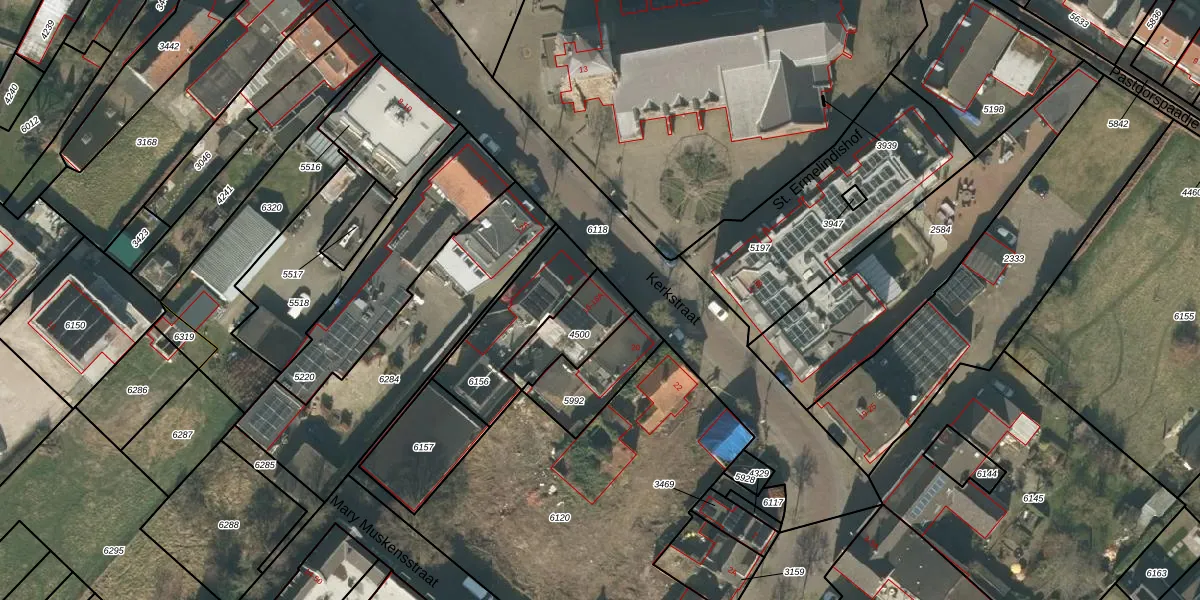 Kerkstraat 16-A is gelegen op kadastraal perceel MGT01A4500. Deze kadastrale aanduiding is uniek en wordt gebruikt door het Kadaster om eigendomsrechten en andere zakelijke rechten vast te leggen. Het perceel maakt onderdeel uit van de kadastrale gemeente Moergestel.