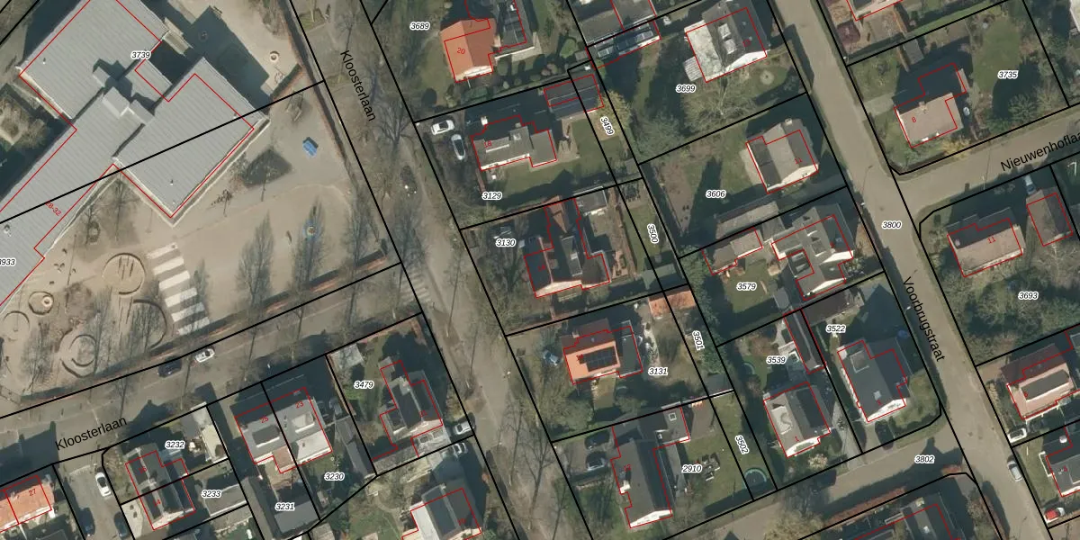 Het perceel waarop Kloosterlaan 16 staat heeft een oppervlakte van 646 m². Dit is een groot perceel. De perceeloppervlakte wordt geregistreerd door het Kadaster. Gedetailleerde informatie over de maten van dit perceel kunt u vinden in het rapport Kadastrale kaart met maatvoering van Kloosterlaan 16.