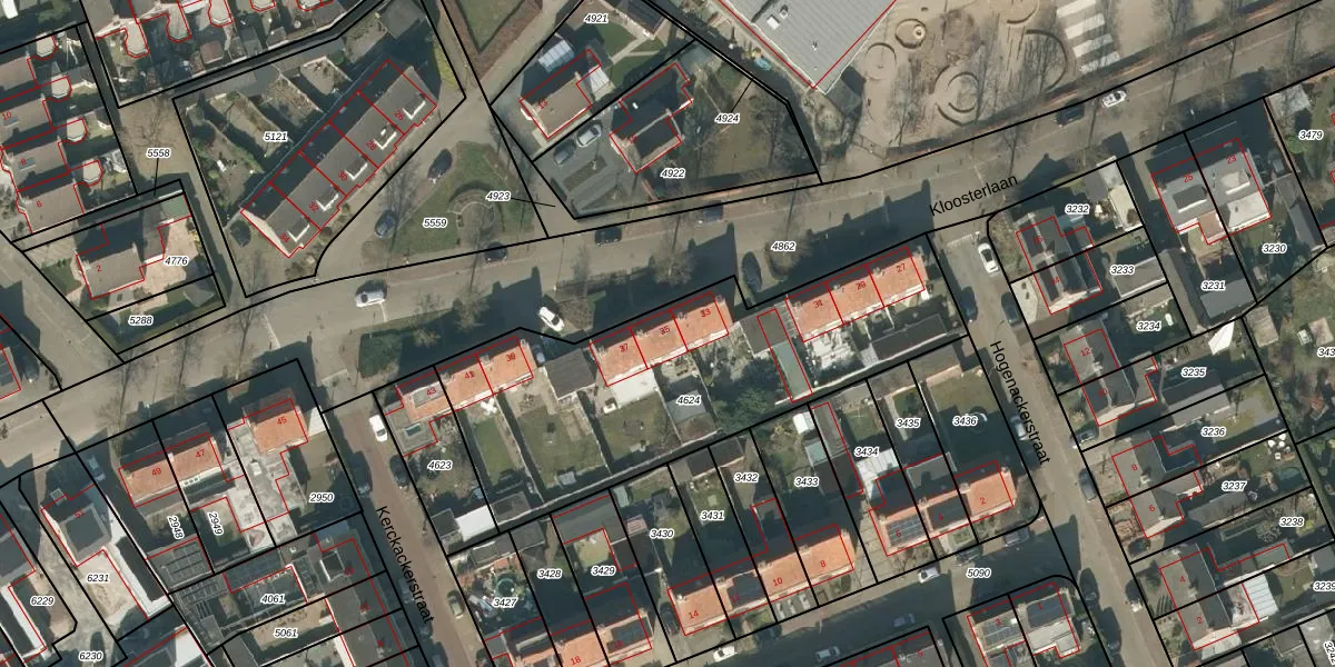 Kloosterlaan 35 is gelegen op kadastraal perceel MGT01A4624. Deze kadastrale aanduiding is uniek en wordt gebruikt door het Kadaster om eigendomsrechten en andere zakelijke rechten vast te leggen. Het perceel maakt onderdeel uit van de kadastrale gemeente Moergestel.