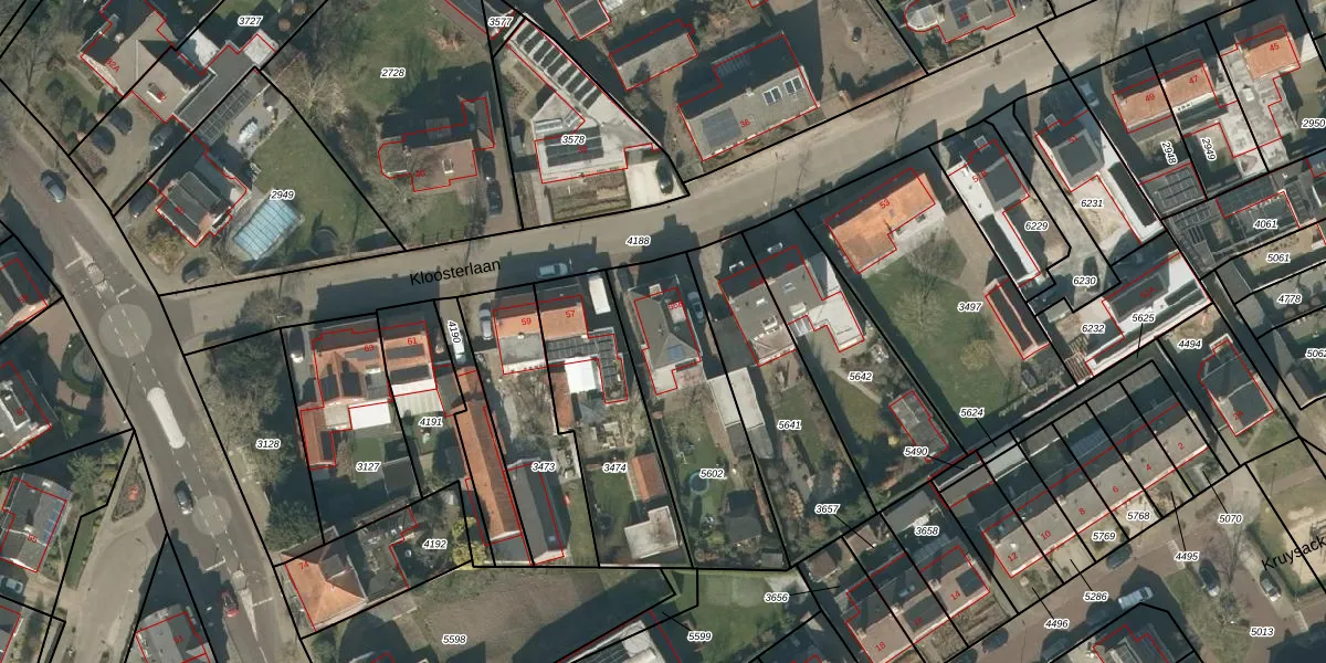 Kloosterlaan 55-B is gelegen op kadastraal perceel MGT01A5602. Deze kadastrale aanduiding is uniek en wordt gebruikt door het Kadaster om eigendomsrechten en andere zakelijke rechten vast te leggen. Het perceel maakt onderdeel uit van de kadastrale gemeente Moergestel.