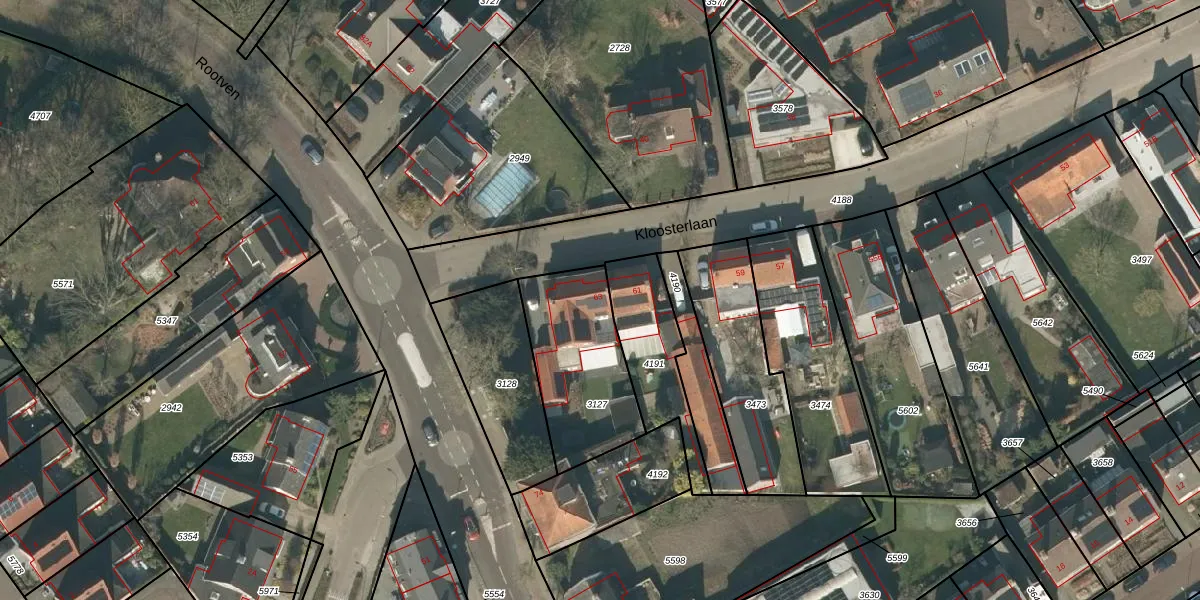 Kloosterlaan 63 is gelegen op kadastraal perceel MGT01A3127. Deze kadastrale aanduiding is uniek en wordt gebruikt door het Kadaster om eigendomsrechten en andere zakelijke rechten vast te leggen. Het perceel maakt onderdeel uit van de kadastrale gemeente Moergestel.