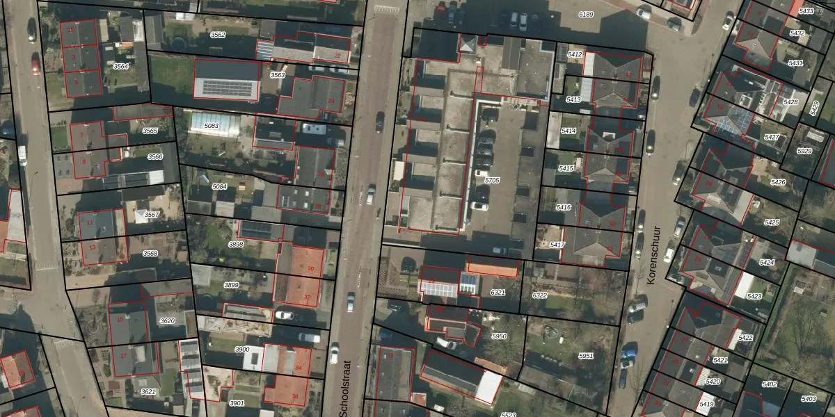 Korenschuur 10 is gelegen op kadastraal perceel MGT01A5705. Deze kadastrale aanduiding is uniek en wordt gebruikt door het Kadaster om eigendomsrechten en andere zakelijke rechten vast te leggen. Het perceel maakt onderdeel uit van de kadastrale gemeente Moergestel.