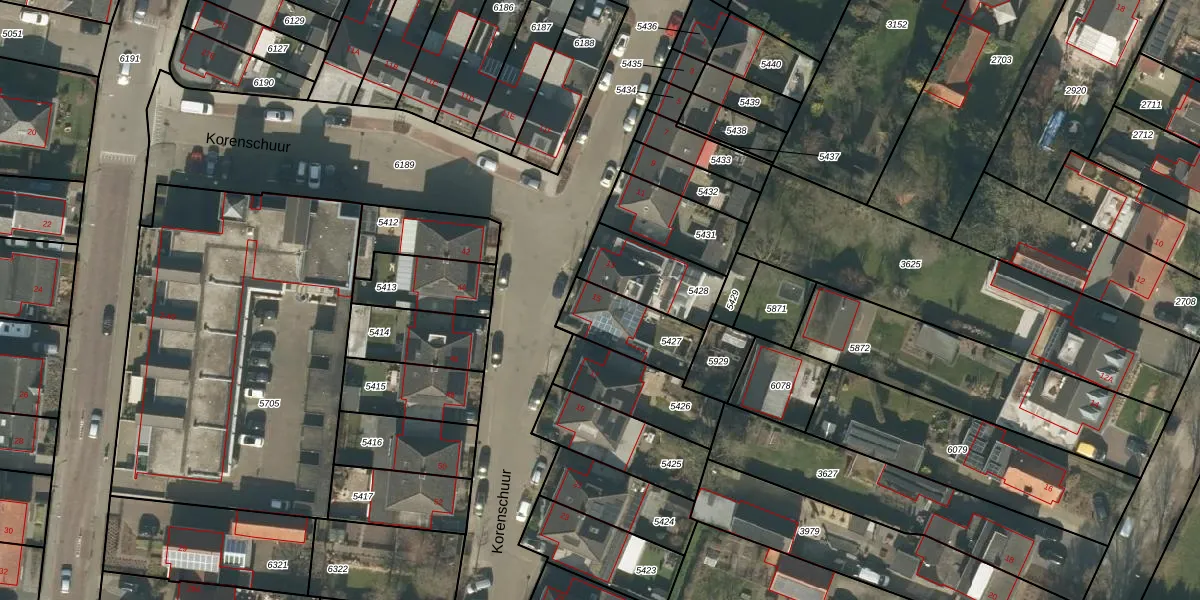 Het perceel waarop Korenschuur 15 staat heeft een oppervlakte van 209 m². Dit is een middelgroot perceel. De perceeloppervlakte wordt geregistreerd door het Kadaster. Gedetailleerde informatie over de maten van dit perceel kunt u vinden in het rapport Kadastrale kaart met maatvoering van Korenschuur 15.