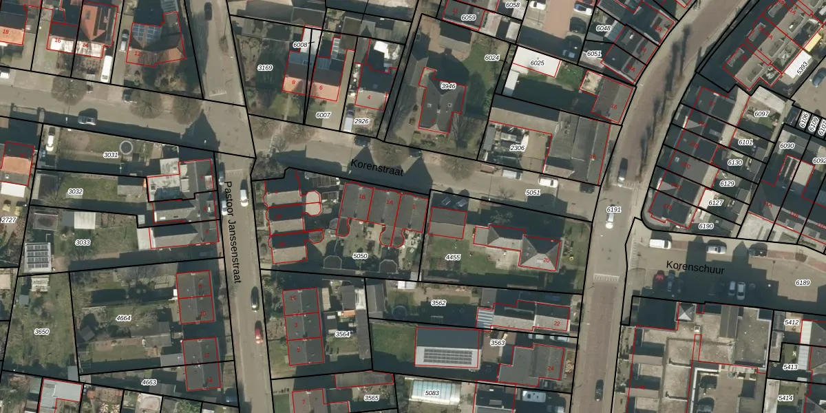 Het perceel waarop Korenstraat 1 staat heeft een oppervlakte van 935 m². Dit is een groot perceel. De perceeloppervlakte wordt geregistreerd door het Kadaster. Gedetailleerde informatie over de maten van dit perceel kunt u vinden in het rapport Kadastrale kaart met maatvoering van Korenstraat 1.