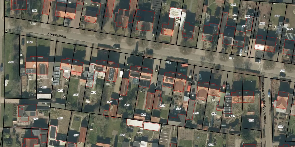 Het perceel waarop Korenstraat 21 staat heeft een oppervlakte van 510 m². Dit is een groot perceel. De perceeloppervlakte wordt geregistreerd door het Kadaster. Gedetailleerde informatie over de maten van dit perceel kunt u vinden in het rapport Kadastrale kaart met maatvoering van Korenstraat 21.