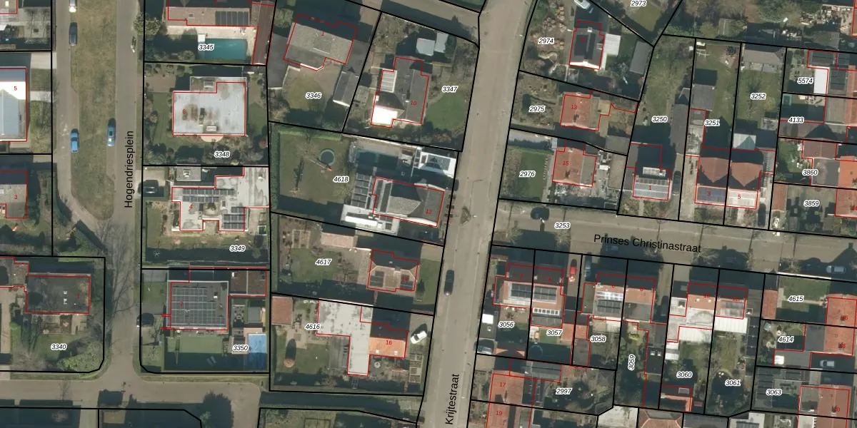 Het perceel waarop Krijtestraat 12 staat heeft een oppervlakte van 934 m². Dit is een groot perceel. De perceeloppervlakte wordt geregistreerd door het Kadaster. Gedetailleerde informatie over de maten van dit perceel kunt u vinden in het rapport Kadastrale kaart met maatvoering van Krijtestraat 12.