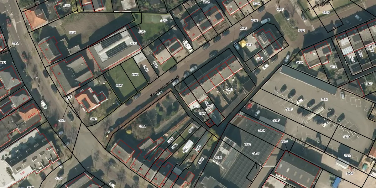 Kruysackerstraat 11 is gelegen op kadastraal perceel MGT01A5012. Deze kadastrale aanduiding is uniek en wordt gebruikt door het Kadaster om eigendomsrechten en andere zakelijke rechten vast te leggen. Het perceel maakt onderdeel uit van de kadastrale gemeente Moergestel.