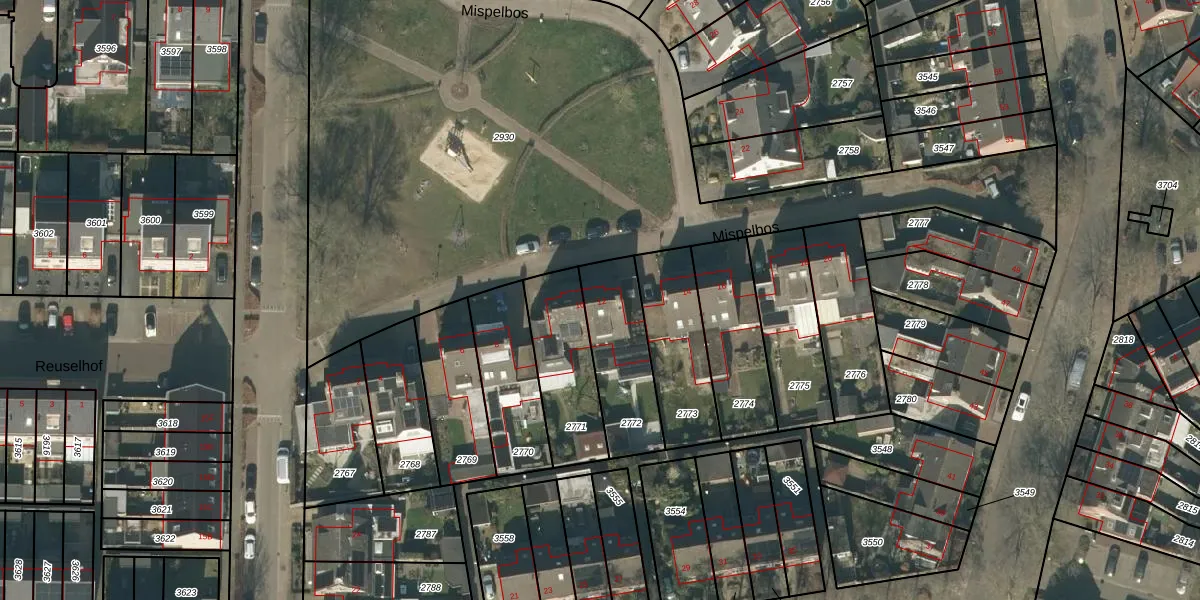 Het perceel waarop Mispelbos 12 staat heeft een oppervlakte van 310 m². Dit is een groot perceel. De perceeloppervlakte wordt geregistreerd door het Kadaster. Gedetailleerde informatie over de maten van dit perceel kunt u vinden in het rapport Kadastrale kaart met maatvoering van Mispelbos 12.