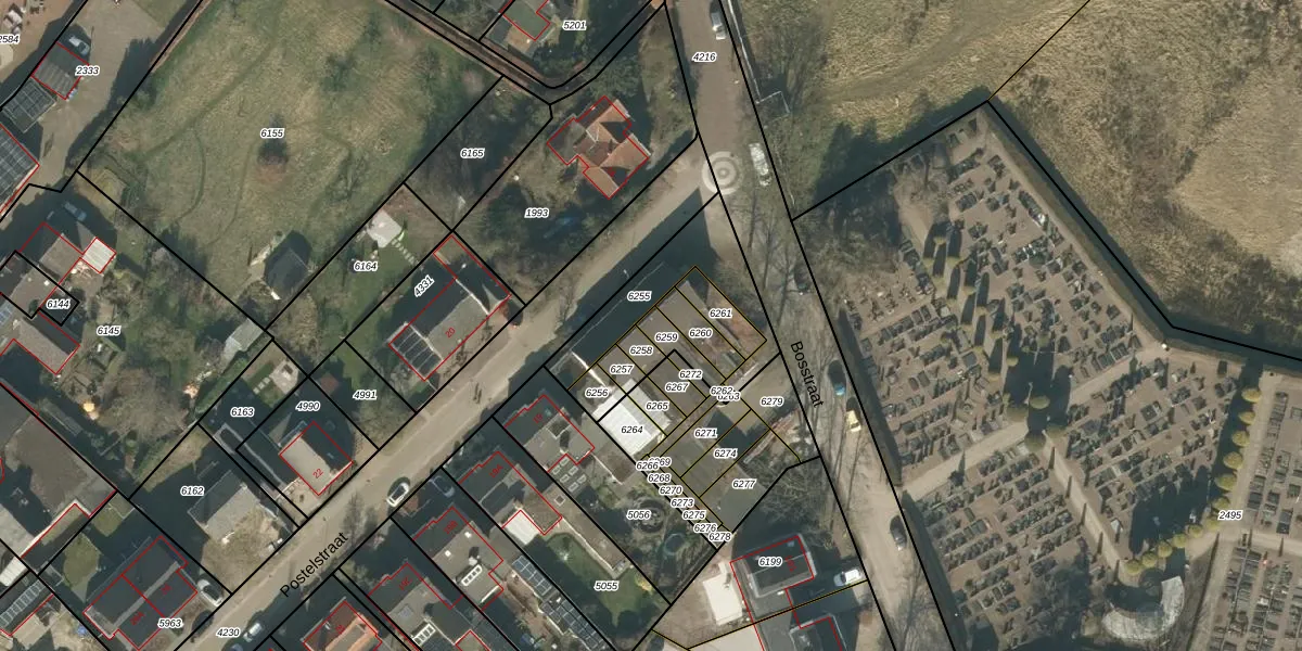 Het perceel waarop Postelstraat 17-C staat heeft een oppervlakte van 53 m². Dit is een klein perceel. De perceeloppervlakte wordt geregistreerd door het Kadaster. Gedetailleerde informatie over de maten van dit perceel kunt u vinden in het rapport Kadastrale kaart met maatvoering van Postelstraat 17-C.