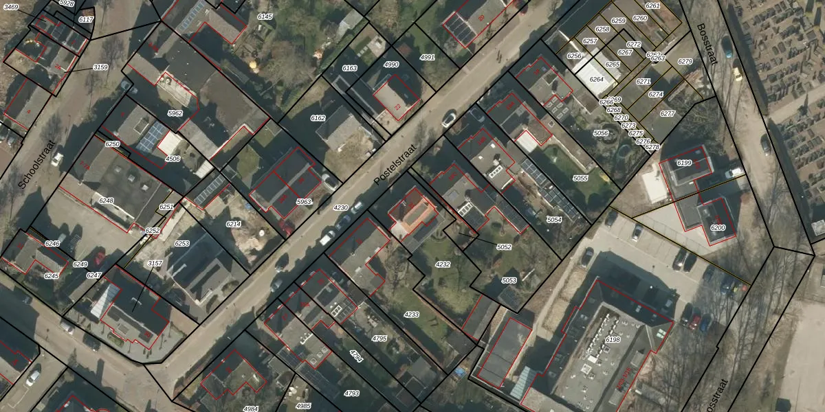 Het perceel waarop Postelstraat 21 staat heeft een oppervlakte van 510 m². Dit is een groot perceel. De perceeloppervlakte wordt geregistreerd door het Kadaster. Gedetailleerde informatie over de maten van dit perceel kunt u vinden in het rapport Kadastrale kaart met maatvoering van Postelstraat 21.