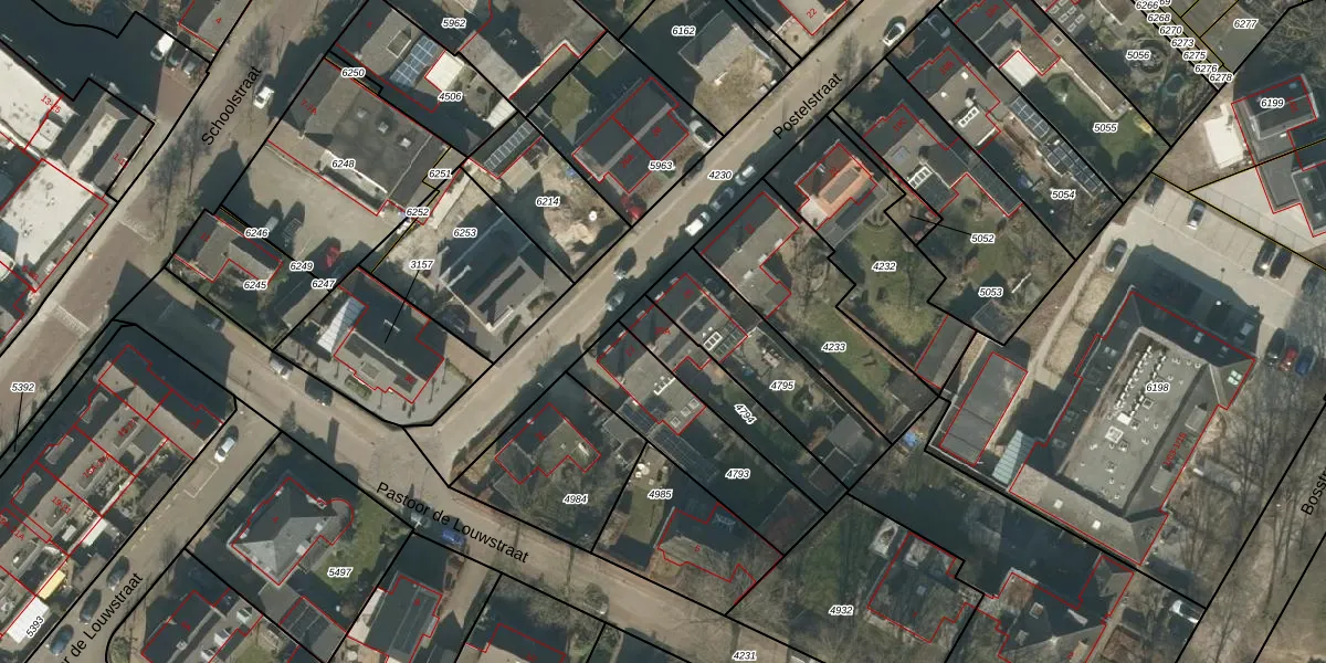 Het perceel waarop Postelstraat 25-A staat heeft een oppervlakte van 233 m². Dit is een middelgroot perceel. De perceeloppervlakte wordt geregistreerd door het Kadaster. Gedetailleerde informatie over de maten van dit perceel kunt u vinden in het rapport Kadastrale kaart met maatvoering van Postelstraat 25-A.