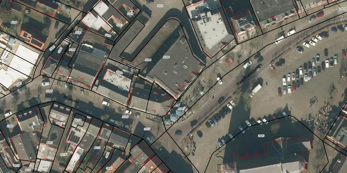 Raadhuisstraat 1 is gelegen op kadastraal perceel MGT01A5096. Deze kadastrale aanduiding is uniek en wordt gebruikt door het Kadaster om eigendomsrechten en andere zakelijke rechten vast te leggen. Het perceel maakt onderdeel uit van de kadastrale gemeente Moergestel.
