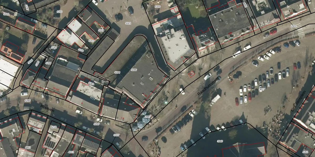 Raadhuisstraat 1-B is gelegen op kadastraal perceel MGT01A5096. Deze kadastrale aanduiding is uniek en wordt gebruikt door het Kadaster om eigendomsrechten en andere zakelijke rechten vast te leggen. Het perceel maakt onderdeel uit van de kadastrale gemeente Moergestel.