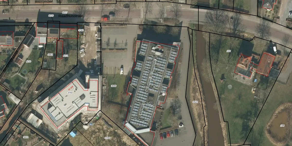 Het perceel waarop Raadhuisstraat 46 staat heeft een oppervlakte van 5197 m². Dit is een zeer groot perceel. De perceeloppervlakte wordt geregistreerd door het Kadaster. Gedetailleerde informatie over de maten van dit perceel kunt u vinden in het rapport Kadastrale kaart met maatvoering van Raadhuisstraat 46.