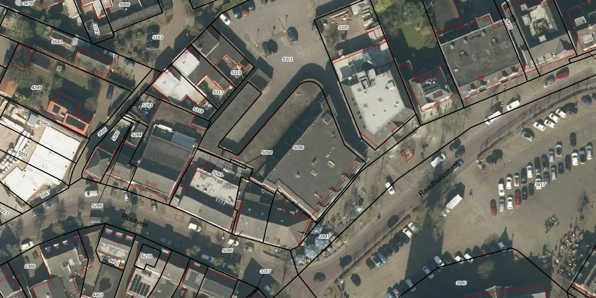 Raadhuisstraat 5-B is gelegen op kadastraal perceel MGT01A5096. Deze kadastrale aanduiding is uniek en wordt gebruikt door het Kadaster om eigendomsrechten en andere zakelijke rechten vast te leggen. Het perceel maakt onderdeel uit van de kadastrale gemeente Moergestel.