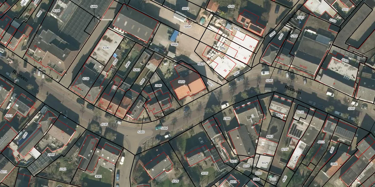 Het perceel waarop Rootven 22 staat heeft een oppervlakte van 400 m². Dit is een groot perceel. De perceeloppervlakte wordt geregistreerd door het Kadaster. Gedetailleerde informatie over de maten van dit perceel kunt u vinden in het rapport Kadastrale kaart met maatvoering van Rootven 22.