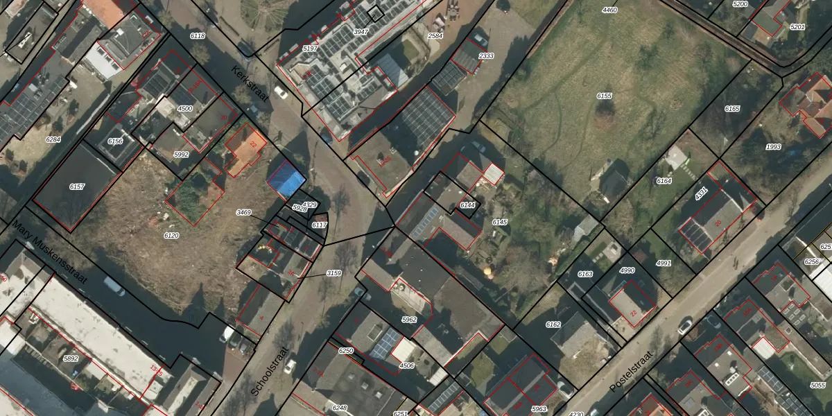 Het perceel waarop Schoolstraat 1 staat heeft een oppervlakte van 1347 m². Dit is een zeer groot perceel. De perceeloppervlakte wordt geregistreerd door het Kadaster. Gedetailleerde informatie over de maten van dit perceel kunt u vinden in het rapport Kadastrale kaart met maatvoering van Schoolstraat 1.