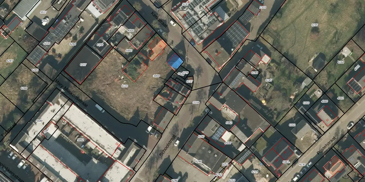 Het perceel waarop Schoolstraat 2 staat heeft een oppervlakte van 67 m². Dit is een klein perceel. De perceeloppervlakte wordt geregistreerd door het Kadaster. Gedetailleerde informatie over de maten van dit perceel kunt u vinden in het rapport Kadastrale kaart met maatvoering van Schoolstraat 2.