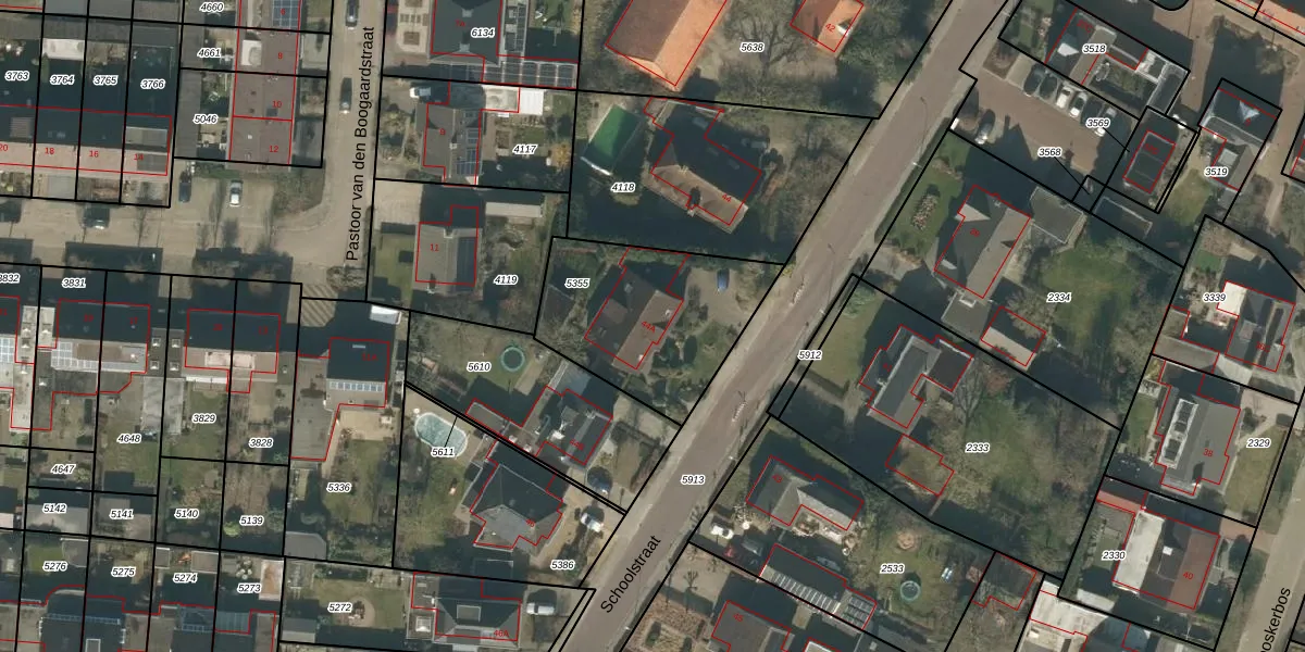 Schoolstraat 44-A is gelegen op kadastraal perceel MGT01A5355. Deze kadastrale aanduiding is uniek en wordt gebruikt door het Kadaster om eigendomsrechten en andere zakelijke rechten vast te leggen. Het perceel maakt onderdeel uit van de kadastrale gemeente Moergestel.