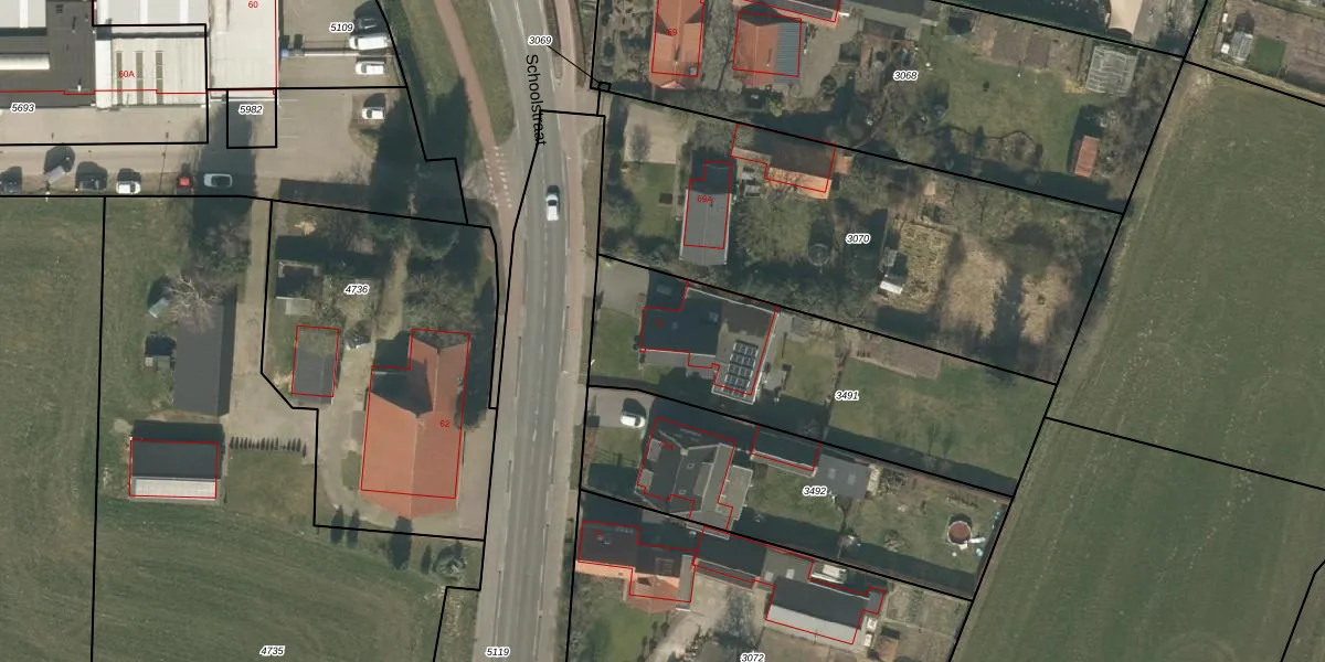 Het perceel waarop Schoolstraat 71 staat heeft een oppervlakte van 1275 m². Dit is een zeer groot perceel. De perceeloppervlakte wordt geregistreerd door het Kadaster. Gedetailleerde informatie over de maten van dit perceel kunt u vinden in het rapport Kadastrale kaart met maatvoering van Schoolstraat 71.
