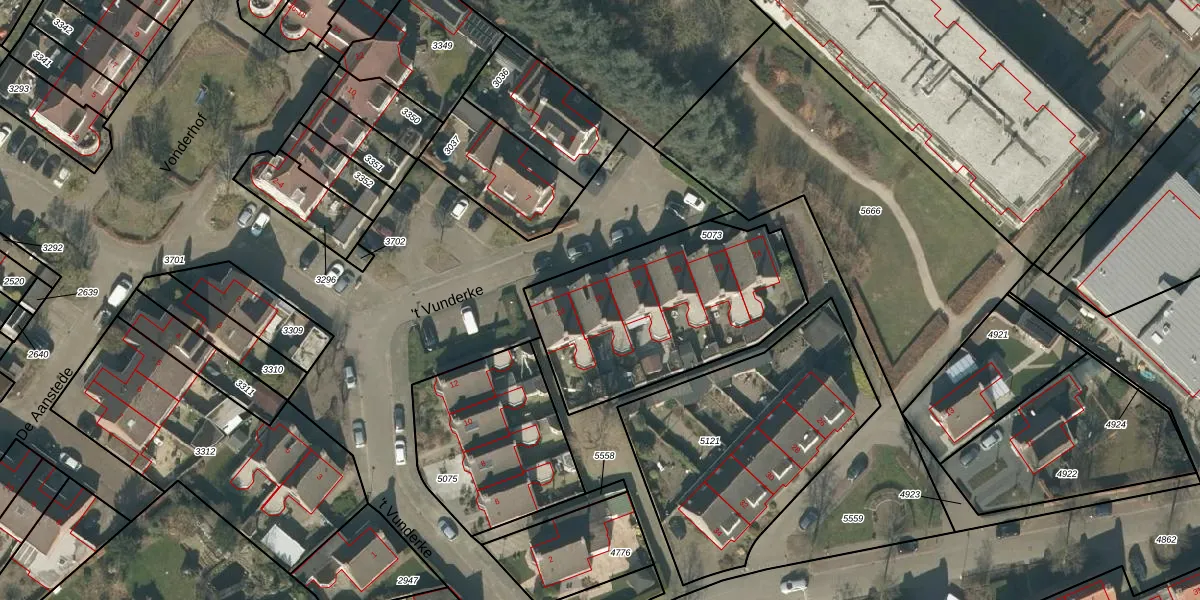 Het perceel waarop 't Vunderke 16 staat heeft een oppervlakte van 920 m². Dit is een groot perceel. De perceeloppervlakte wordt geregistreerd door het Kadaster. Gedetailleerde informatie over de maten van dit perceel kunt u vinden in het rapport Kadastrale kaart met maatvoering van 't Vunderke 16.