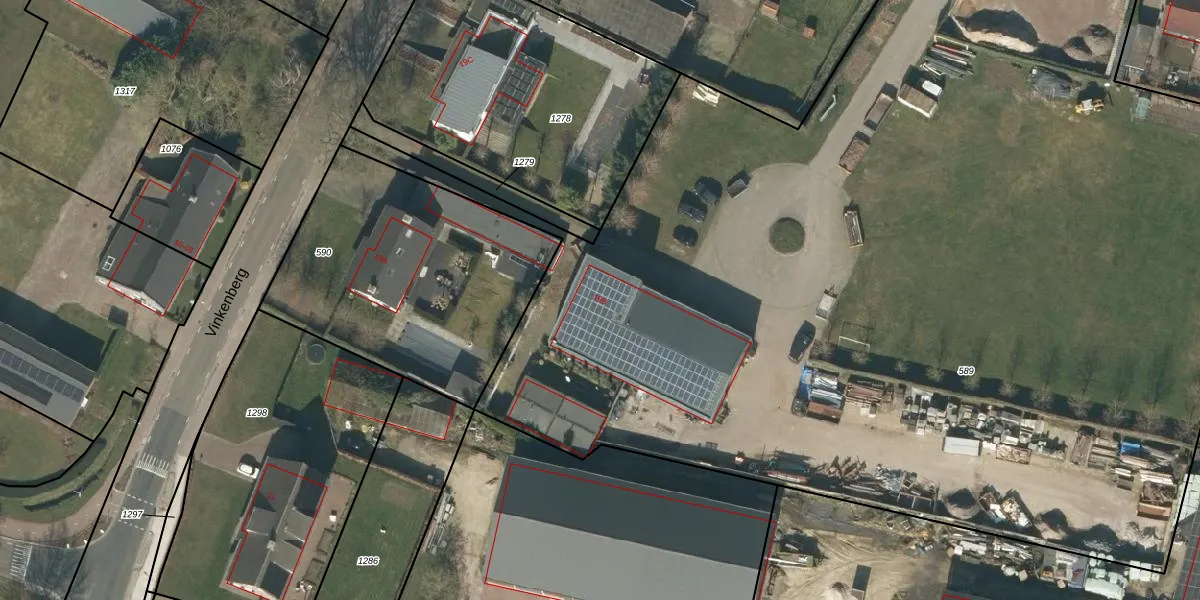 Het perceel waarop Vinkenberg 19-B staat heeft een oppervlakte van 9030 m². Dit is een zeer groot perceel. De perceeloppervlakte wordt geregistreerd door het Kadaster. Gedetailleerde informatie over de maten van dit perceel kunt u vinden in het rapport Kadastrale kaart met maatvoering van Vinkenberg 19-B.