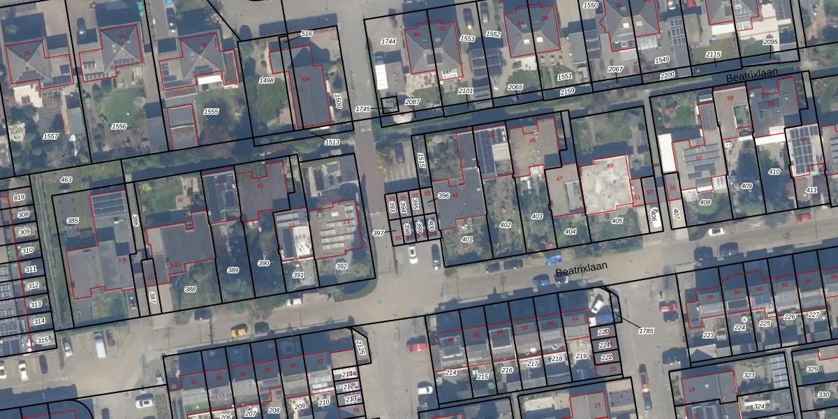 Gebruik de zoekbalk of klik op een perceel voor informatie over de adressen binnen dit perceel.