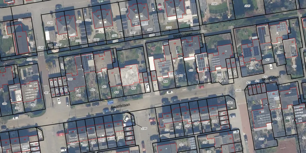 Het perceel waarop Beatrixlaan 55 staat heeft een oppervlakte van 46 m². Dit is een klein perceel. De perceeloppervlakte wordt geregistreerd door het Kadaster. Gedetailleerde informatie over de maten van dit perceel kunt u vinden in het rapport Kadastrale kaart met maatvoering van Beatrixlaan 55.