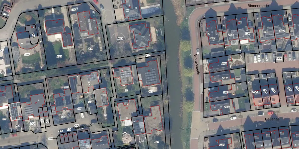 Gebruik de zoekbalk of klik op een perceel voor informatie over de adressen binnen dit perceel.