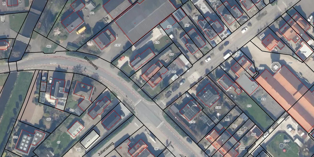 Het perceel waarop Bredeweg 13 staat heeft een oppervlakte van 380 m². Dit is een groot perceel. De perceeloppervlakte wordt geregistreerd door het Kadaster. Gedetailleerde informatie over de maten van dit perceel kunt u vinden in het rapport Kadastrale kaart met maatvoering van Bredeweg 13.