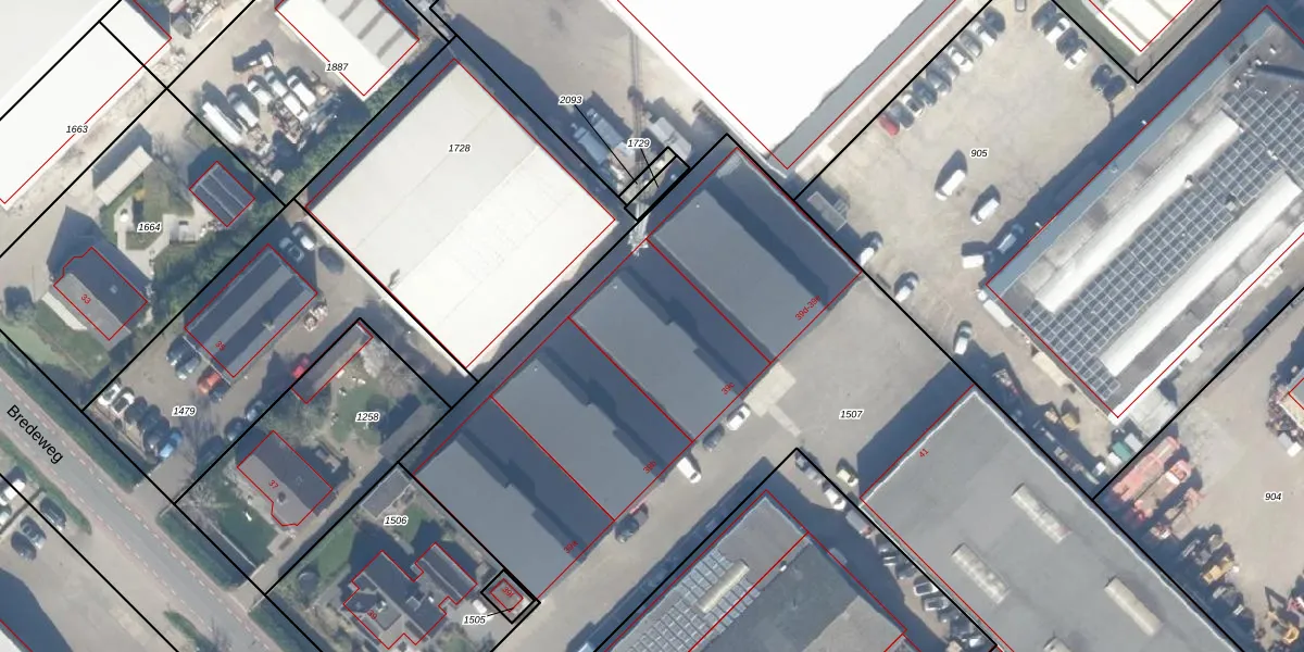 Het perceel waarop Bredeweg 39-c staat heeft een oppervlakte van 7971 m². Dit is een zeer groot perceel. De perceeloppervlakte wordt geregistreerd door het Kadaster. Gedetailleerde informatie over de maten van dit perceel kunt u vinden in het rapport Kadastrale kaart met maatvoering van Bredeweg 39-c.