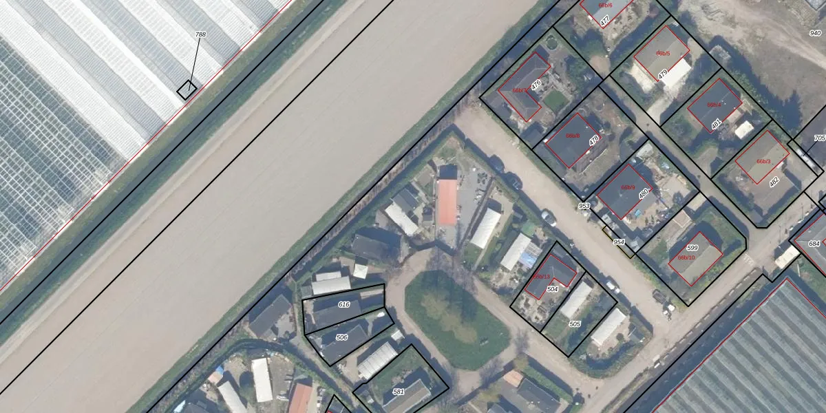 Het adres is gelegen op perceel 952 in de sectie F en de kadastrale gemeente Zevenhuizen. De kadastrale aanduiding is aldus ZVH02-F-952. De gemiddelde perceeloppervlakte in de kadastrale gemeente Zevenhuizen is 3848 m². Dit perceel is met zijn 3,6 ha dus groter dan gemiddeld. De grootste perceeloppervlakte in de kadastrale gemeente is 2,09 km². De kleinste oppervlakte bedraagt 0 m². Er zijn 83 adressen aanwezig op het perceel. De huidige grenzen van het perceel zijn digitaal in de Basisregistratie Kadaster (BRK) geregistreerd op 12-01-2023.