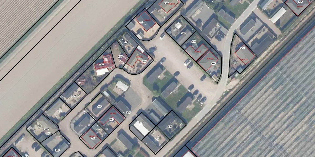 Het adres is gelegen op perceel 952 in de sectie F en de kadastrale gemeente Zevenhuizen. De kadastrale aanduiding is aldus ZVH02-F-952. De gemiddelde perceeloppervlakte in de kadastrale gemeente Zevenhuizen is 3848 m². Dit perceel is met zijn 3,6 ha dus groter dan gemiddeld. Het grootste perceel in de kadastrale gemeente is 2,09 km². Het kleinste perceel heeft een oppervlakte van 0 m². Op het perceel zijn 83 adressen aanwezig. In de Basisregistratie Kadaster (BRK) werden de grenzen van het perceel geregistreerd op 12-01-2023.