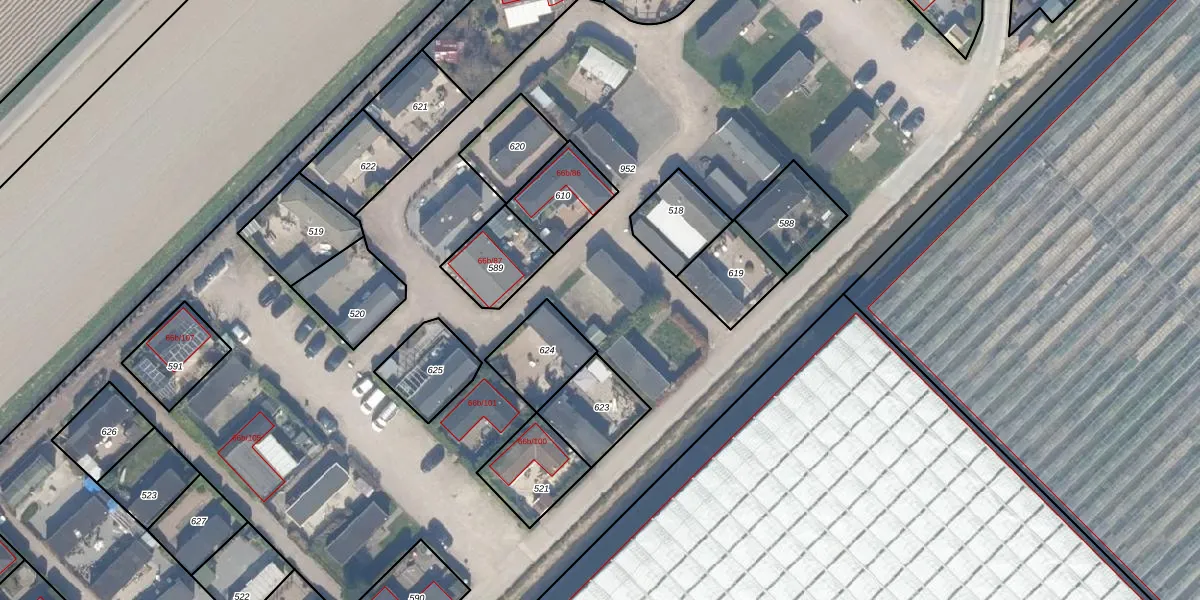 Het adres is gelegen op perceel 952 in de sectie F en de kadastrale gemeente Zevenhuizen. De kadastrale aanduiding is aldus ZVH02-F-952. De gemiddelde perceeloppervlakte in de kadastrale gemeente Zevenhuizen is 3847,42 m². Dit perceel is met zijn 3,6 ha dus groter dan gemiddeld. Het grootste perceel in de kadastrale gemeente is 2,09 km². Het kleinste perceel heeft een oppervlakte van 0 m². Op het perceel liggen in totaal 83 adressen. De laatste wijziging in het de Basisregistratie Kadaster (BRK) was op 12-01-2023.