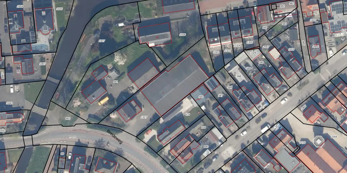 Het perceel waarop Bredeweg 7 staat heeft een oppervlakte van 1362 m². Dit is een zeer groot perceel. De perceeloppervlakte wordt geregistreerd door het Kadaster. Gedetailleerde informatie over de maten van dit perceel kunt u vinden in het rapport Kadastrale kaart met maatvoering van Bredeweg 7.