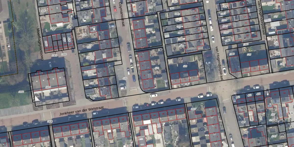 Het perceel waarop Coymansstraat 4 staat heeft een oppervlakte van 552 m². Dit is een groot perceel. De perceeloppervlakte wordt geregistreerd door het Kadaster. Gedetailleerde informatie over de maten van dit perceel kunt u vinden in het rapport Kadastrale kaart met maatvoering van Coymansstraat 4.