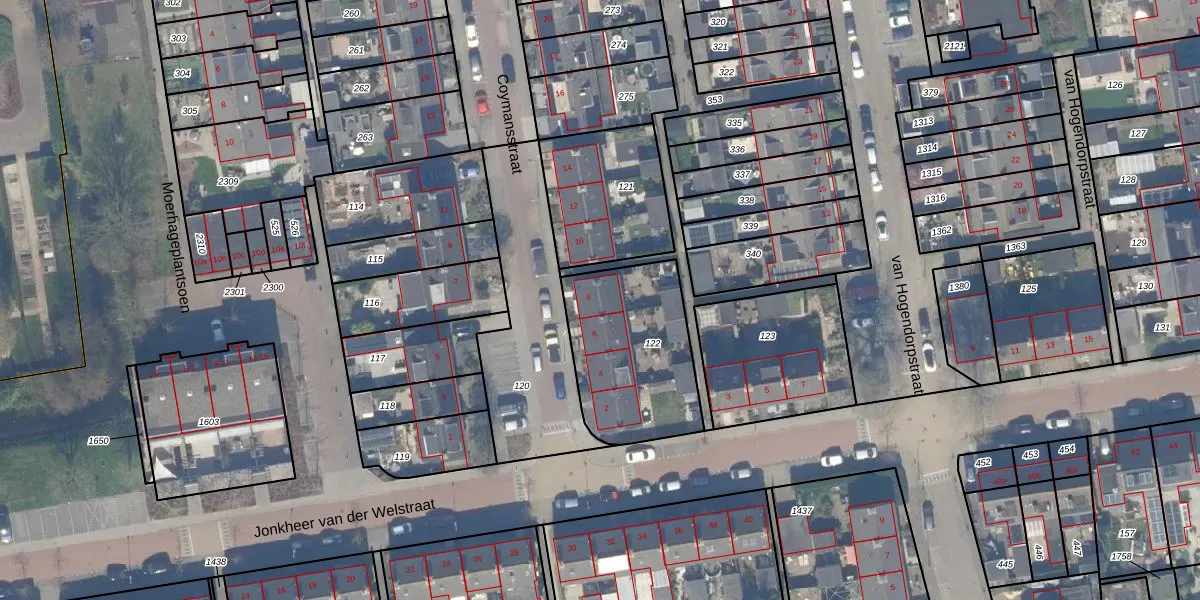 Het perceel waarop Coymansstraat 8 staat heeft een oppervlakte van 552 m². Dit is een groot perceel. De perceeloppervlakte wordt geregistreerd door het Kadaster. Gedetailleerde informatie over de maten van dit perceel kunt u vinden in het rapport Kadastrale kaart met maatvoering van Coymansstraat 8.