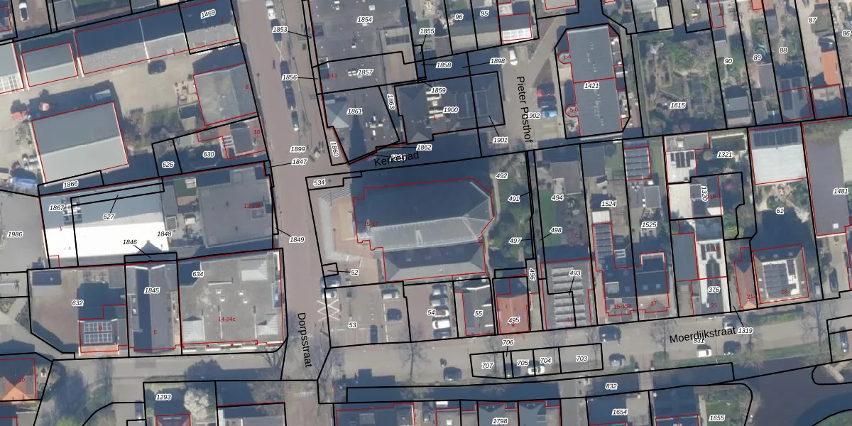 Dorpsstraat 15 is gelegen op kadastraal perceel MKP00B492. Deze kadastrale aanduiding is uniek en wordt gebruikt door het Kadaster om eigendomsrechten en andere zakelijke rechten vast te leggen. Het perceel maakt onderdeel uit van de kadastrale gemeente Moerkapelle.