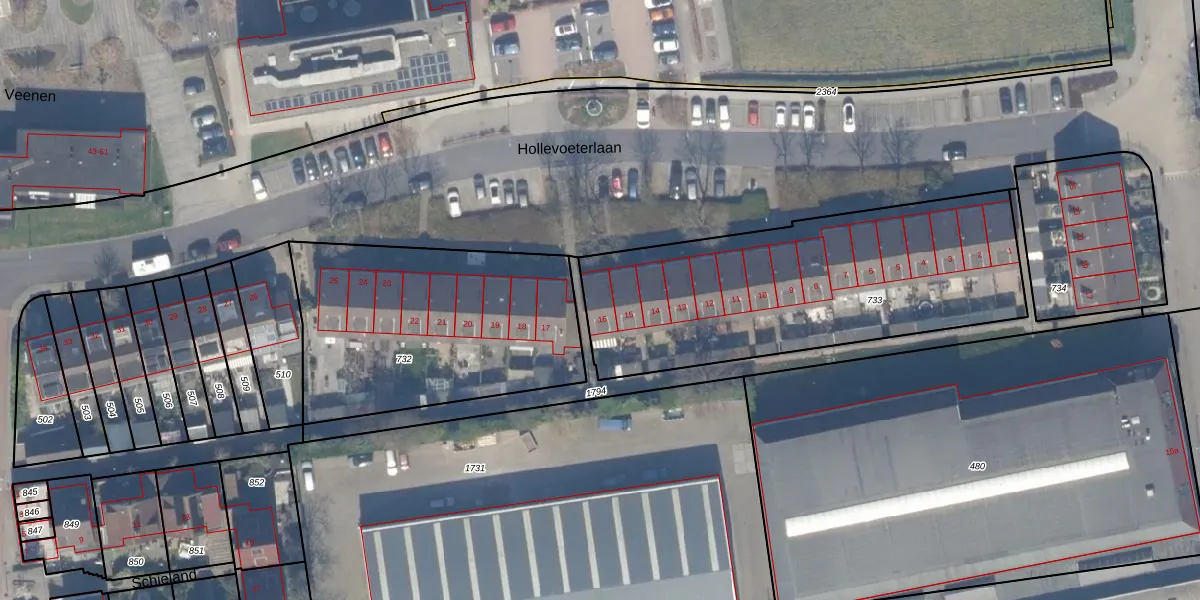 Het perceel waarop Hollevoeterlaan 16 staat heeft een oppervlakte van 1538 m². Dit is een zeer groot perceel. De perceeloppervlakte wordt geregistreerd door het Kadaster. Gedetailleerde informatie over de maten van dit perceel kunt u vinden in het rapport Kadastrale kaart met maatvoering van Hollevoeterlaan 16.