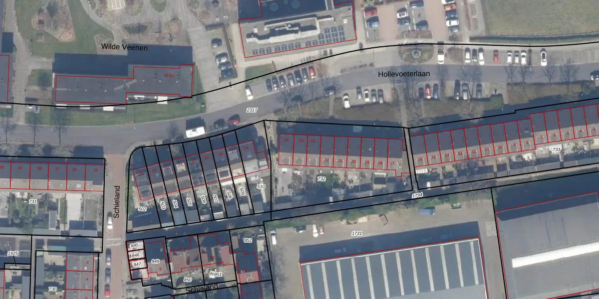 Het perceel waarop Hollevoeterlaan 24 staat heeft een oppervlakte van 1196 m². Dit is een zeer groot perceel. De perceeloppervlakte wordt geregistreerd door het Kadaster. Gedetailleerde informatie over de maten van dit perceel kunt u vinden in het rapport Kadastrale kaart met maatvoering van Hollevoeterlaan 24.