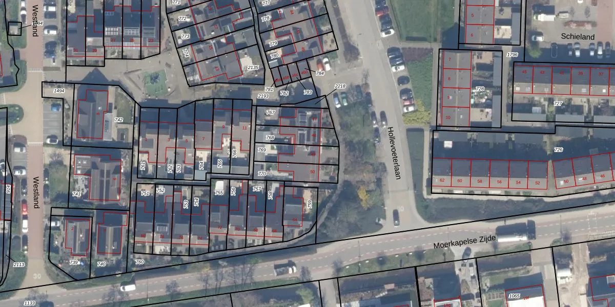 Het adres is gelegen op perceel 769 in de sectie B en de kadastrale gemeente Moerkapelle. De kadastrale aanduiding is aldus MKP00-B-769. Het perceel is 165 m² groot. Dat is kleiner dan de gemiddelde perceeloppervlakte in Moerkapelle, dat op 2804,09 m² ligt. Het kleinste perceel in de kadastrale gemeente is 1 m² groot. De grootste perceeloppervlakte is 65,4 ha. Dit is het enige adres dat aanwezig is op het perceel. De huidige grenzen van het perceel zijn digitaal in de Basisregistratie Kadaster (BRK) geregistreerd op 12-12-2002.