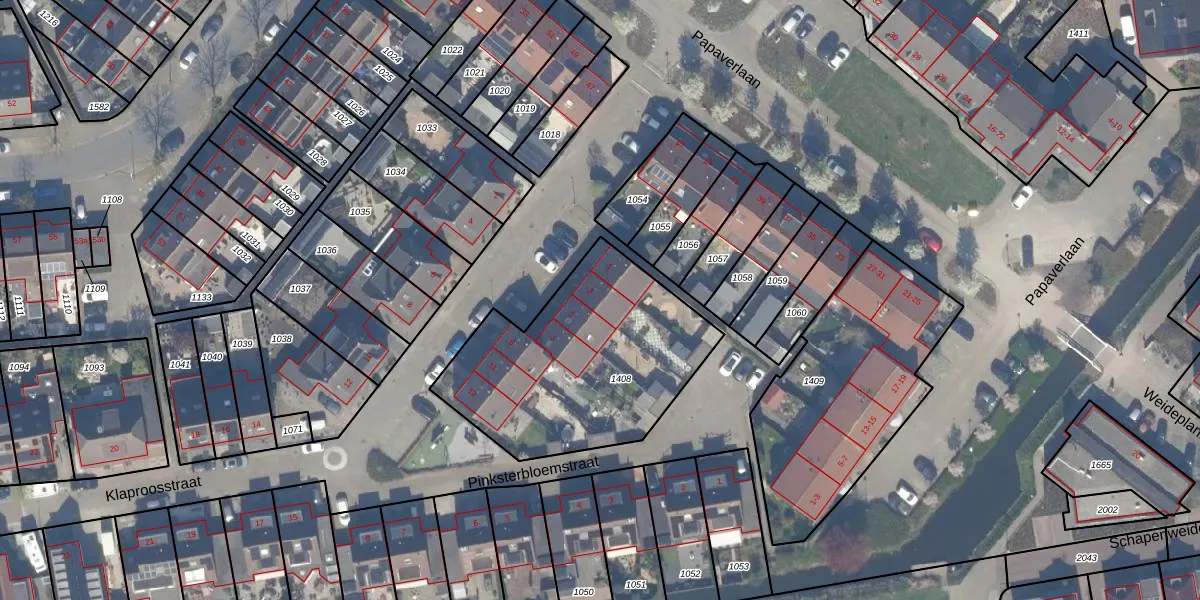 Het perceel waarop Klaproosstraat 3 staat heeft een oppervlakte van 1005 m². Dit is een zeer groot perceel. De perceeloppervlakte wordt geregistreerd door het Kadaster. Gedetailleerde informatie over de maten van dit perceel kunt u vinden in het rapport Kadastrale kaart met maatvoering van Klaproosstraat 3.