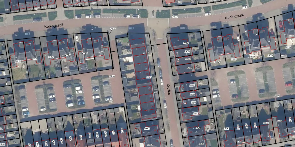 Het perceel waarop Kruilier 10 staat heeft een oppervlakte van 1370 m². Dit is een zeer groot perceel. De perceeloppervlakte wordt geregistreerd door het Kadaster. Gedetailleerde informatie over de maten van dit perceel kunt u vinden in het rapport Kadastrale kaart met maatvoering van Kruilier 10.
