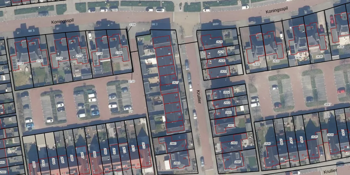 Het perceel waarop Kruilier 12 staat heeft een oppervlakte van 1370 m². Dit is een zeer groot perceel. De perceeloppervlakte wordt geregistreerd door het Kadaster. Gedetailleerde informatie over de maten van dit perceel kunt u vinden in het rapport Kadastrale kaart met maatvoering van Kruilier 12.