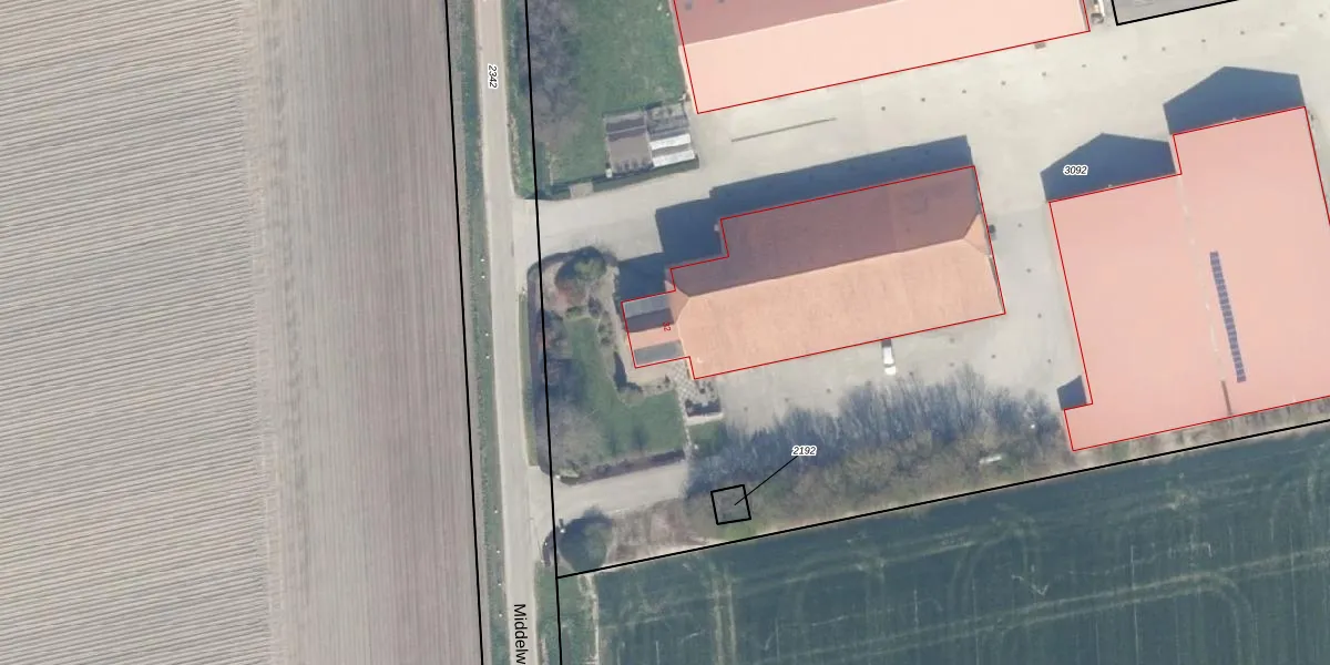 Het perceel waarop Middelweg 32 staat heeft een oppervlakte van 1,6 ha. Dit is een zeer groot perceel. De perceeloppervlakte wordt geregistreerd door het Kadaster. Gedetailleerde informatie over de maten van dit perceel kunt u vinden in het rapport Kadastrale kaart met maatvoering van Middelweg 32.