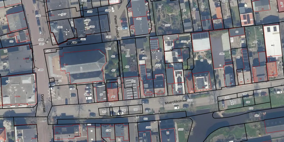 Het perceel waarop Moerdijkstraat 15-a staat heeft een oppervlakte van 414 m². Dit is een groot perceel. De perceeloppervlakte wordt geregistreerd door het Kadaster. Gedetailleerde informatie over de maten van dit perceel kunt u vinden in het rapport Kadastrale kaart met maatvoering van Moerdijkstraat 15-a.