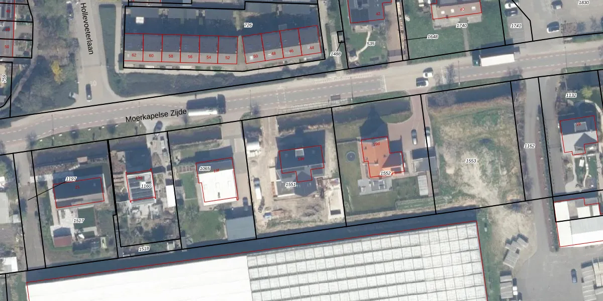Het perceel waarop Moerkapelse Zijde 19-e staat heeft een oppervlakte van 1194 m². Dit is een zeer groot perceel. De perceeloppervlakte wordt geregistreerd door het Kadaster. Gedetailleerde informatie over de maten van dit perceel kunt u vinden in het rapport Kadastrale kaart met maatvoering van Moerkapelse Zijde 19-e.