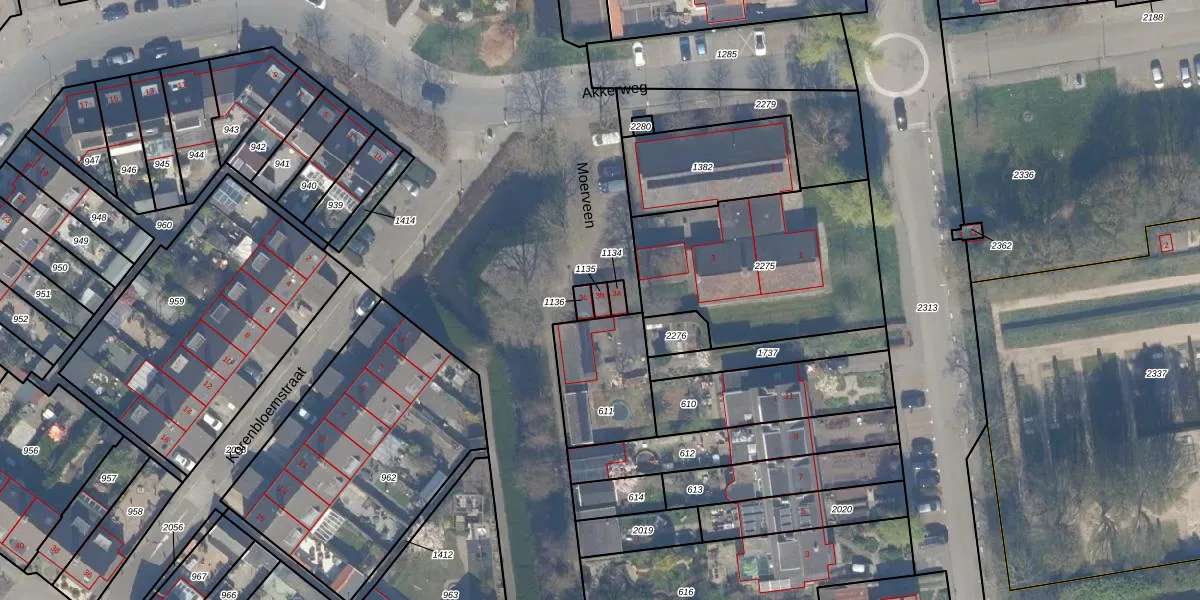 Het adres is gelegen op perceel 1135 in de sectie B en de kadastrale gemeente Moerkapelle. De kadastrale aanduiding is aldus MKP00-B-1135. Het perceel is kleiner dan gemiddeld in Moerkapelle. Het perceel is 17 m² groot, terwijl het gemiddelde ligt op 2804,09 m². Het grootste perceel in de kadastrale gemeente is 65,4 ha. Het kleinste perceel heeft een oppervlakte van 1 m². Dit is het enige adres dat aanwezig is op het perceel. De laatste wijziging in het de Basisregistratie Kadaster (BRK) was op 24-09-2010.