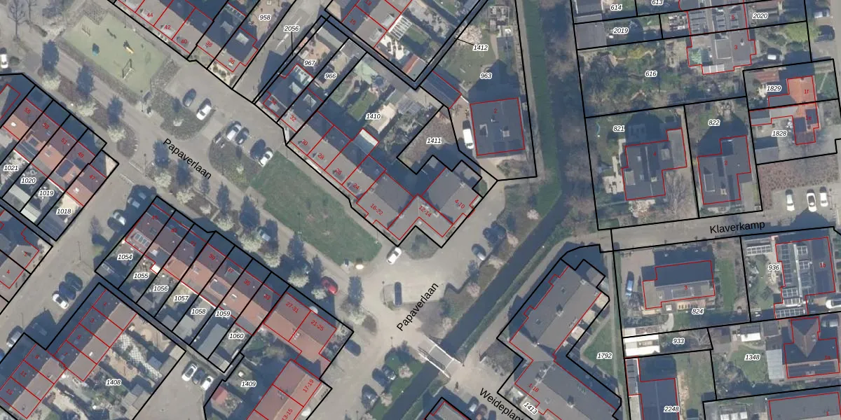 Het perceel waarop Papaverlaan 14 staat heeft een oppervlakte van 1091 m². Dit is een zeer groot perceel. De perceeloppervlakte wordt geregistreerd door het Kadaster. Gedetailleerde informatie over de maten van dit perceel kunt u vinden in het rapport Kadastrale kaart met maatvoering van Papaverlaan 14.