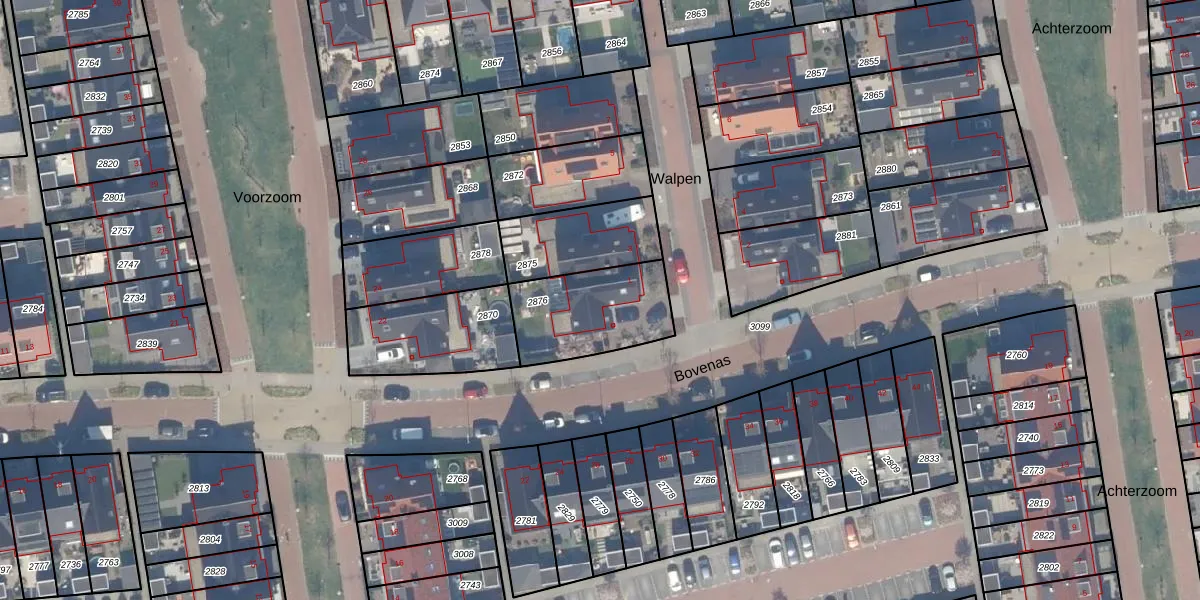 Gebruik de zoekbalk of klik op een perceel voor informatie over de adressen binnen dit perceel.